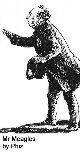 I loved this sentance: "Besides his dumb-waiter, Mr Meagles had two other not dumb waiters in the persons of two parlour-maids with rosy faces and bright eyes, who were a highly ornamental part of the table decoration."
