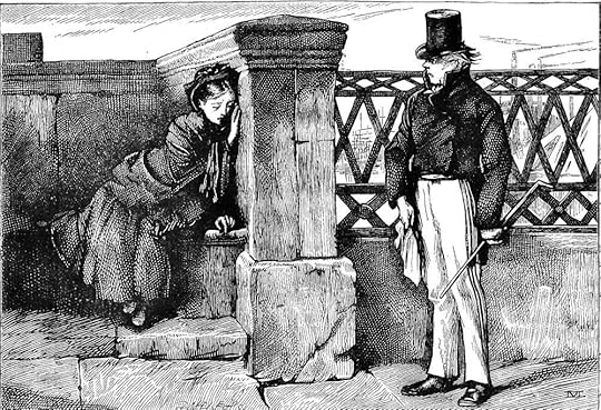 John first calls on Mr. Dorrit, with his regular offering of cigars, to which Mr. Dorrit makes a great show of surprise. He asks about “Miss Amy”, and is told that she has gone for a walk on the Iron Bridge. Straightaway, John turns in that direction.
