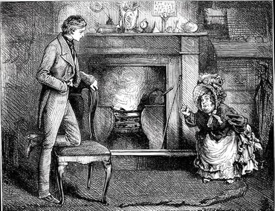 Of course David should still pay his rent. And I would choose Peggotty any time too. The 'problem' is, though, that part of the rent would be Mrs. Crupp waiting on David, cooking his food etc. She already weaseled herself out of the cooking in the previous installment, and now weasels herself out of waiting on David, while she still gets the money for it - and probably David's sherry for her fits. I found it quite telling that those stopped at once as soon as Betsey Trotwood was present.