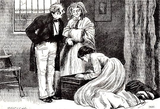 She had heard Miss Wade deny having it, and knew that she would “sooner have sunk it in the sea, or burnt it” than give it to him. So Tattycoram took the box with her, crossing on the same boat that they had. She looks full of a “glow and rapture” to be with them again, saying that being with Miss Wade had made her wretched. She tells them Miss Wade worked on her, so that whenever she saw someone kind, the worse fault she found with them: