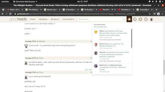 Niharika wrote: "Trisha wrote: "so, goodreads notifs have eben getting better"