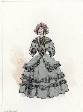”In person, Mrs General, including her skirts which had much to do with it, was of a dignified and imposing appearance; ample, rustling, gravely voluminous; always upright behind the proprieties. She might have been taken—had been taken—to the top of the Alps and the bottom of Herculaneum, without disarranging a fold in her dress, or displacing a pin. If her countenance and hair had rather a floury appearance, as though from living in some transcendently genteel Mill, it was rather because she was a chalky creation altogether, than because she mended her complexion with violet powder, or had turned grey. If her eyes had no expression, it was probably because they had nothing to express. If she had few wrinkles, it was because her mind had never traced its name or any other inscription on her face. A cool, waxy, blown-out woman, who had never lighted well.