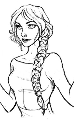 Unsure whether to colour Evie in or not...I might do a background, because that's when she's setting up the garlands for the winter solstice and she's going to be levitating flowers..currently using this dress to doodle from (view spoiler) ["br"]>["br"]>