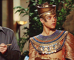 I probably won't be fully on much, as I have duration things to do, but I will be planning out the pharaoh, as well as characters that are in this and the sister group on my phone ^-^ so, it won't be odd if I disappear for a while. In the meantime, have a gif of a cute little awe filled pharaoh.