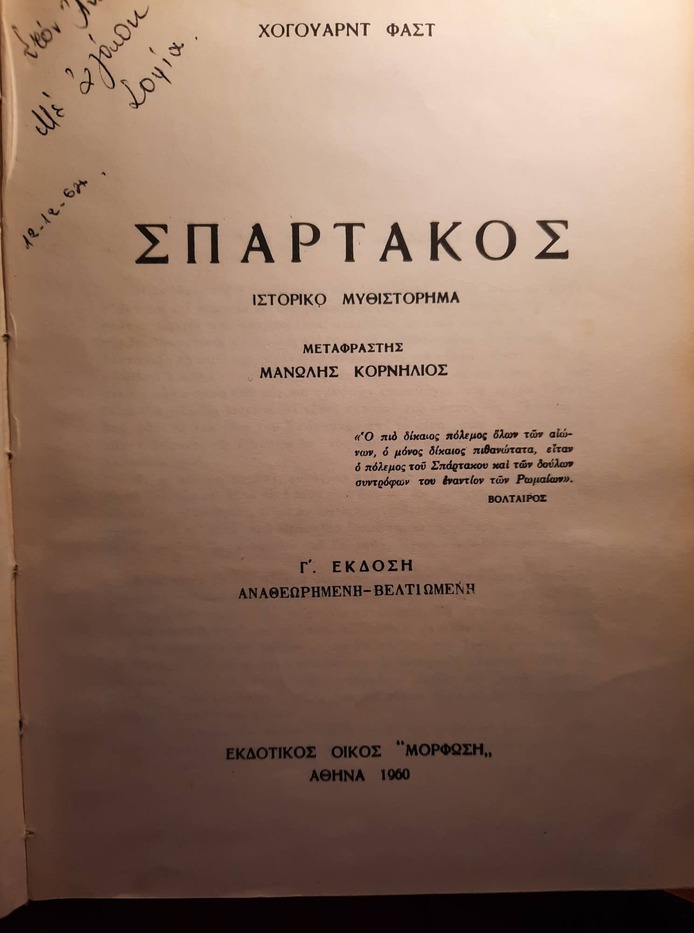 Please add the hardcover greek edition of Σπάρτακος by Howard Fast.
