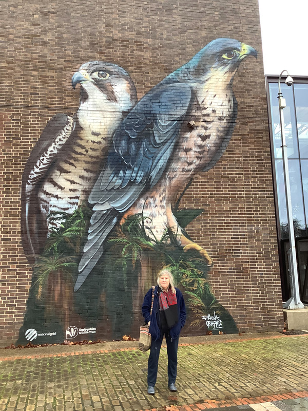 Great place for people watching as well as book-looking. All colour co-ordinated outdoorsy families, (North Face and Patagonia apparel!) and all the children were girls! I don't know where the folks with boys went to but they were not there. Perhaps they were all in the nearby Lead Museum? And here is the front of 'The Museum of Making' in Derby. https://i.postimg.cc/0y6mM4Cj/IMG-070... Opinions differ, in the family, about whether it's (they?) are a peregrine or not. Artistic license maybe? Its an odd place. I'm not sure that they have actually sorted out what the purpose of the museum should be. Still it's early days... I think they need some one visionary in the mix somehow. The family were not impressed... but as mills go its a lovely mill. I kind of wish they had given us more history of the building, as a silk-mill, what there was displayed was very sketchy. I suppose that most of the looms have been destroyed by now but it would have been lovely to see someone demonstrating the making of silk. Though 'the worm might turn', and disagree...