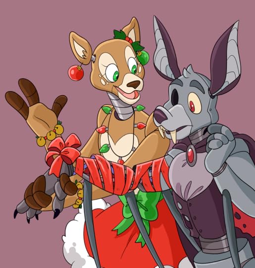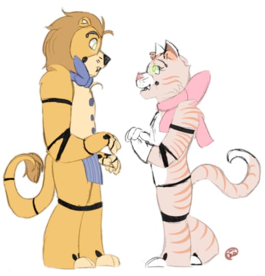 History(?): She was known well as a 'walking nightlight' to walk around her old daycare. She was built with speakers in her chest, hidden by fur, so it is often implied she was originally supposed to be on stage but changed cause of a glitched coding which made her shy and introverted. North is known to work best around small amounts of people and usually small children, infants up to the age of 12 to be exact. She was moved to a different location multiple times because of arson, flooding, and other tragedies. Even still, she has a long history with disaster and still seems to keep the children and people around her safe.