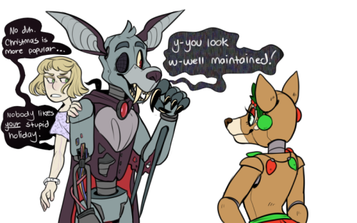 Nice Towards Both animatronic and Human?: No, hates humans, and thinks they don't deserve to live, thinks he should be the only human to live. Animatronics make him a bit annoyed, depending if they're possessed or not. He knows that almost all animatronics hate killers, though, so he tends to stay away from them and give them space.