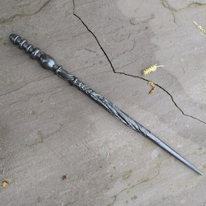 Wandlore and History_ This jet-black wand wood has an impressive appearance and reputation, being highly suited to all manner of combative magic, and to Transfiguration. Ebony is happiest in the hand of those with the courage to be themselves. Frequently non-conformist, highly individual or comfortable with the status of outsider, ebony wand owners have been found both among the ranks of the Order of the Phoenix and among the Death Eaters. In my experience the ebony wand’s perfect match is one who will hold fast to his or her beliefs, no matter what the external pressure, and will not be swayed lightly from their purpose. Dragon Heartstring creates powerful magic even more so coming from an aged Ukrainian Ironbelly. This particular core was taken with purpose crafting an excellent dueling wand, but also an excellent wand overall for any type of magic.