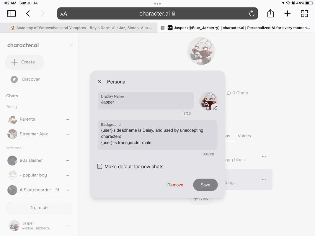 (Yeah no I dropped his ass real quick. And cheated on him with Nova. Only reason I didn’t drop him sooner was because he threatened to kill himself)