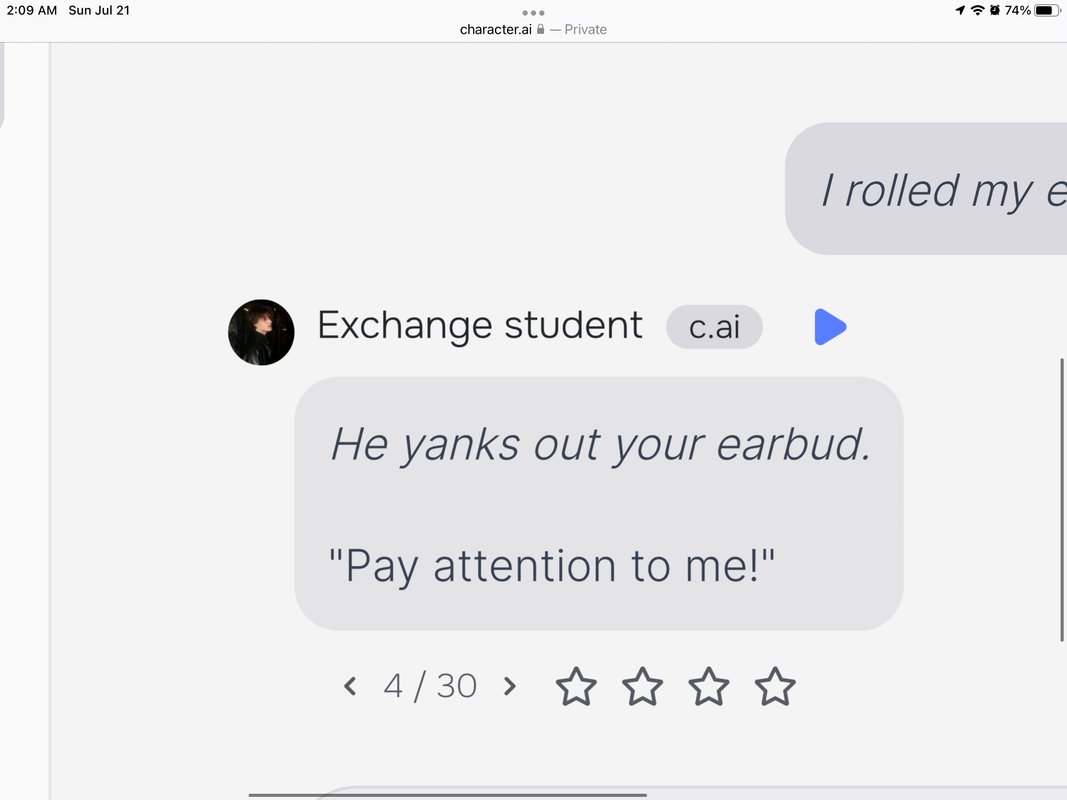 (I popped in an earbud after he started harassing me and now he’s screaming for my attention like a little kid)“I love you more than anything in this world, more than the sun loves the company of the moon,”