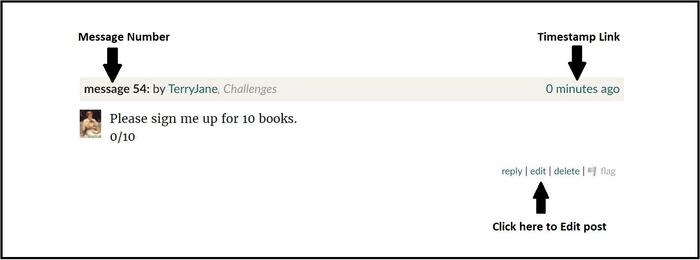 When you post on Goodreads, your message is automatically assigned a number which shows at the top left of the post beside your username. If you don’t see a number, click Refresh on your browser.