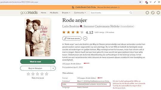 Hoi Emmy, ik had geen idee dat dit een Kindle-editie was. Ik vond op Goodreads maar 1 boek met deze titel. Hoe kan ik zien dat dit om een Kindle-uitgave gaat? Het boek dat ik lees is een paperback, zal ik een vraag om een nieuw boek toe te voegen indienen via de groep voor het toevoegen van nieuwe boeken? Alvast bedankt voor je tijd en reactie! Groetjes, Ellen