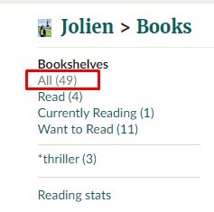 Je kunt hoogstens zelf een (minimale) bijdrage proberen te leveren door een eigen 'thriller' shelve te maken, en hopen dat veel meer mensen dat voor deze boeken ook doen. Dát kun je dus wel zelf doen. Klik op 'Jolien's bookshelves', klik dan bovenaan op 'edit', vul in dat nieuwe venster 'thriller' in en klik vervolgens rechts van dat veld op 'Add'.