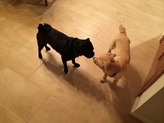 He’s just about the same size as GoGo. He’s besotted with Boo. Wabash is annoyed that there’s yet another dog here.