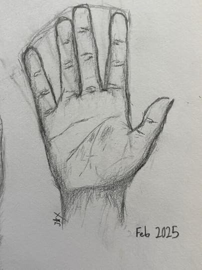 (And this is what it looks like trying to draw the same hand now… you can see why I was distracted)