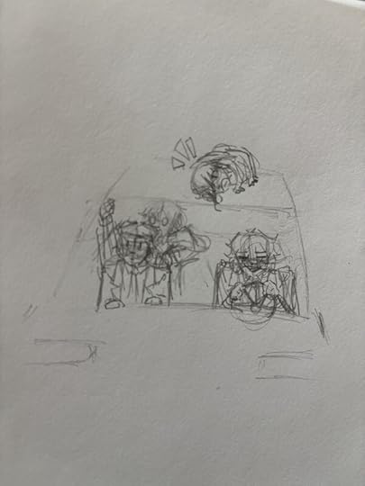 (artist's 5-minute rendition of the best paragraph of Dazai's Entrance Exam because it pains me that they never animated Dazai's shitty driving. plus Atsushi because they just kinda shoved him into the timeline when they adapted it)