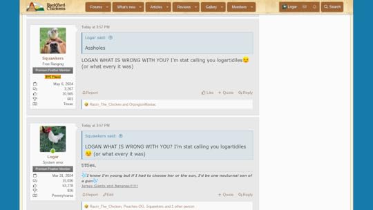You shouldn't have left that one group pm on BYC the discussions have been so funny. there was a 10 page thing about titties and I got the name Logantitties 😭"