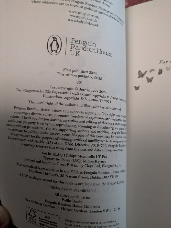 Cristina Leitón (missleiton) | 6468 comments The ISBN you shared on your post is not the one on your copy. It says on the information page that the ISBN of the hardback edition is 9780241607503, which is the one of this edition: The Whisperwicks: The Labyrinth of Lost and Found