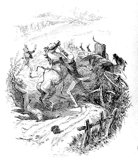 The next chapter does (unusually!) follow straight on, as we can tell by the first word of the title. It's not much of a spoiler to say that we learn a bit more about the type of carriage they are in. It talks about the "front glasses" which are the front windows, so we know it is a closed carriage. It also makes it clear that Bailey is on the outside of the coach - pretty much as Nicholas was with the (view spoiler) in Nicholas Nickleby.