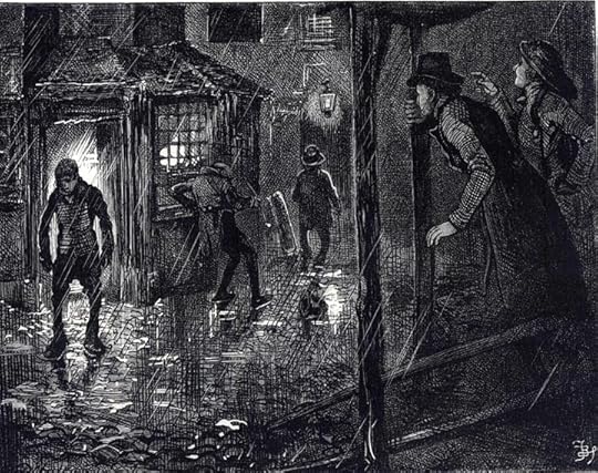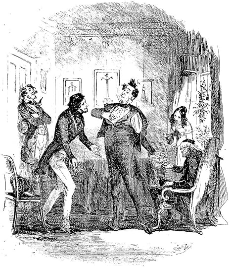 And speaking of Pecksniff, my favorite quote from toward the end of this chapter is from Mark about Pecksniff: "...if he had happened to come back again, while we was there. I had the door all ready, Sir. If Pecksniff had showed his head, or had only so much as listened behind it, I should have caught him like a walnut."