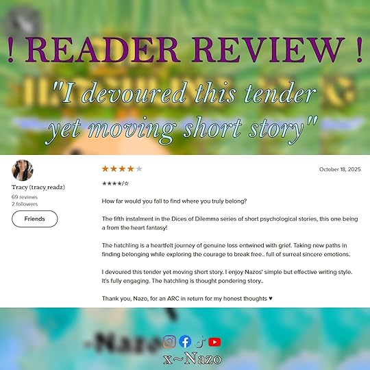 Thank you so much to @tracy_readz for sharing her heartfelt thoughts on The Hatchling, I’m really glad the story’s emotion and simplicity resonated hit! This story was meant to explore loss, belonging, and the quiet courage it takes to find home, even when everything feels unfamiliar. I’m deeply grateful for everyone who takes the time to read and share this short story of mine! 🎲🖤