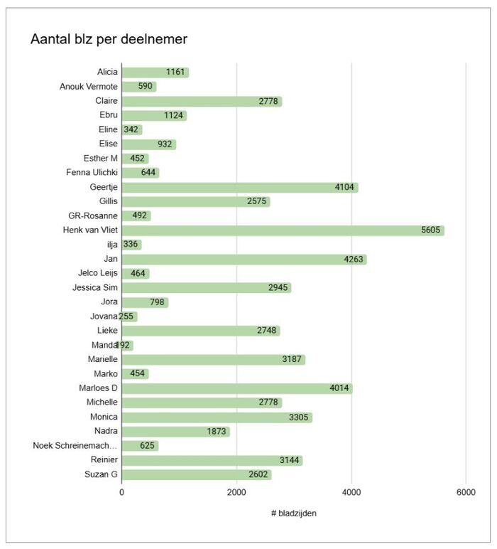 Let ook op die eindsprint bij het inleveren 😆 Én dat er inmiddels al zes deelnemers zijn die meer dan 3000 pagina's hebben gelezen... petje af, hoor!