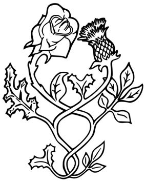 The following week, he is going to ink the rose and thistle of Yorkshire and Scotland: my heritage. The rose will be white, and the thistle, of course, will be purple. The stems and leaves will be green.