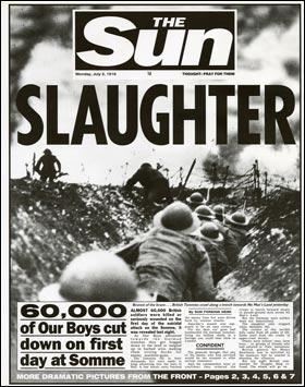 I think that this headline from the Sun newspaper in Britain pretty much summarizes the total horror of the Battle of the Somme. I can't quite grasp the scope and inhumanity of this first day of battle.