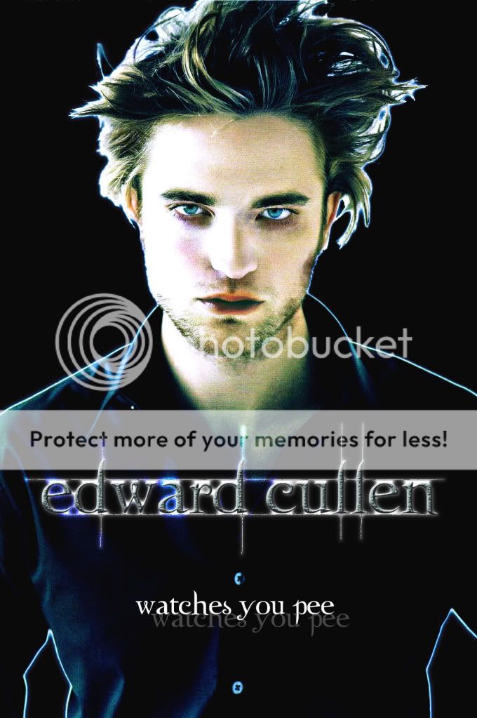 I read the Twilight series, and I thought they were pretty good. But now I seem to think less and less of them. The movie REALLY ruined the books. Kristen Stewart blinks ALL THE TIME!! And Edward is supposed to be the most beautiful being of all time, and look at him. He's okay, but not like I want him to be. But the man who plays James (Cam Gigandet), he is one FINE looking guy. I mean honestly, he is Hottttt. One of my pet peeves is people who watch the movie but don't read the books, and they go all crazy and buy Twilight shirts with pictures of *shudder* Robert Pattinson looking like a FREAK!!! The Twilight craze is just REDICULOUS!! One of my best friends on the entire planet has read the books about 15 times and has seent the movie at least 30 times. Not Joking. She is even having a Twilight themed b-day party, and she invited me as Rosalie. She's Bella, of course. But I get to be mean to her (Mwahahahahaha!) because Rosalie doesn't like Bella. I think she goes way to overboard with this Twilight stuff, as do all my other friends practically. I mean, Stephenie Meyers did a great job writing those books, and I know she worked really hard on them, but sometimes I wish there wasn't a movie, and that people wouldn't go overboard all the time and make Twilight the topic of discussion every time I see them. I hate that. I want my friends back! =(