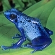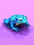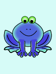 This frog is more cartoonish and less realistic. It's a blue colour in the middle and fades to a brighter cyan colour nearer the edges. The frog is facing directly toward you and has large green eyes and a big smile.