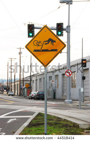 I still think it's a ridiculous sign. I would think most bicyclists would recognize the danger of light rail / tram / train tracks. No?