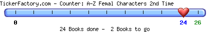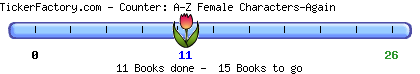 * Read 26 books with female characters' names that start with different letters of the alphabet. Entries can either be for either the first or last name of a major female character in the book.