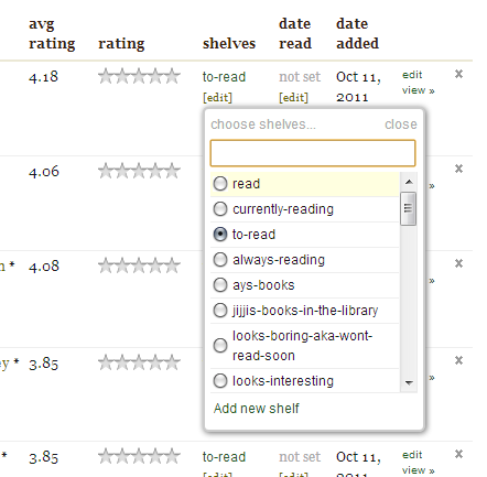 The ticked options may vary, now see which are marked as 'exclusive'. The three primary shelves, i.e.: To-Read, Read and Currently-Reading are exclusive by default, you can't change that. The books can be in either of the three. But other shelves that are NOT exclusive can be in other shelves as-well. So seeing that you've added, "feminist cyberpunk"? mark that out of exclusive. You may be able to add it in both the 'to-read' and the new shelf.