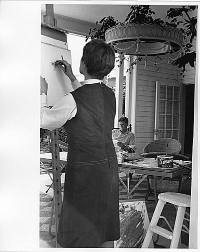 Elaine and Willem de Kooning in his improvised studio on Leo Castelli's porch, 1953