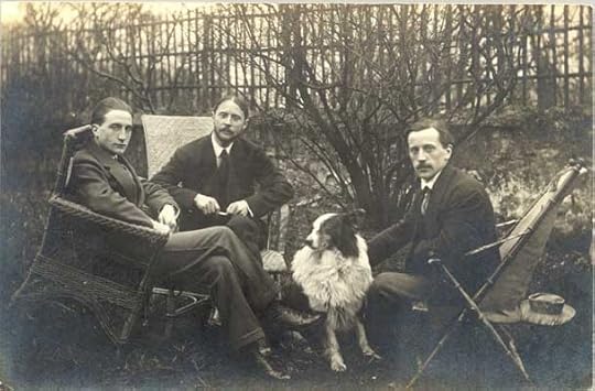 Three Duchamp brothers, left to right: Marcel Duchamp, Jacques Villon, and Raymond Duchamp-Villon in the garden of Jacques Villon's studio in Puteaux, France, 1914, (Smithsonian Institution)