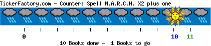 Rules: Spell out the word of your choice: MARCH, SPRING, or DAYLIGHT. The first letter of the first word in the book title should be used to spell out one of the above words. Words like “the, a, an” etc. don’t count (unless you need them too!) MARCH = 5 books, SPRING = 6 books, and DAYLIGHT = 8 books. Choose your own challenge level and if you want to do two or all three of the words have at it! Have fun with this one! Happy Reading