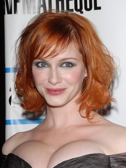 Cheri | 795 comments It was Joan on Mad Men that I like as a 'fictional tv character' not Christina Hendricks. Joan's very tight colorful clothes and bouffant hair makes her appear cartoonish but she is really coming along as an intelligent and thoughtful character. So my point is: 'Don't be judging that book by its cover' right, Hazel?