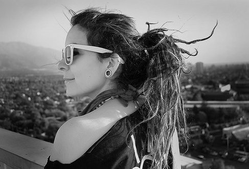description: Long black hair with a few dreads which she often wears in a bun. She has green cat eyes. She has a pretty smile. She is very pale. She has a tattoo of a puma(cougar) on the inside of her lower arm.