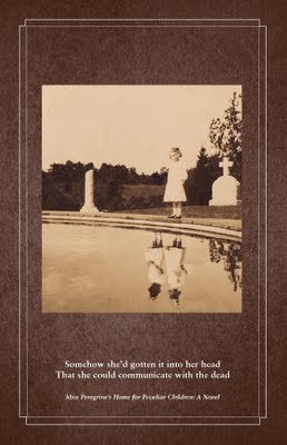And I think I like the pictures, but the placement of them seems off to me. I would have prefered the pictures to be collected in the middle of the book or maybe at the end (think Water for Elephants or something similar for reference). It's awkward when the words just stop mid-page to make room for an unsettling photograph.