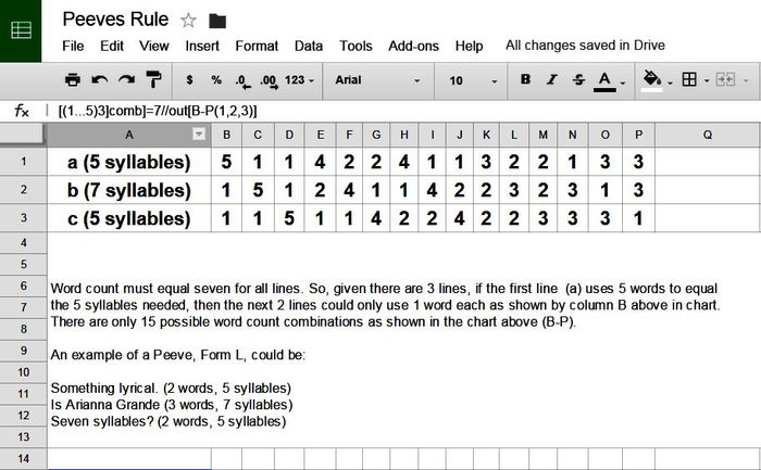 A Peeve is a Haiku using only 7 words.