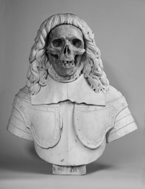 Italian artist, end of XVII century, Vanitas, white marble and giallo antico, 25 x 23 x 9 inches (63 x 58 x 23 cm). Courtesy Sperone Westwater, New York.
