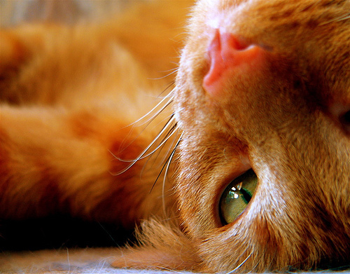 Appearance:Golden brown tabby pelt with deep blue eyes