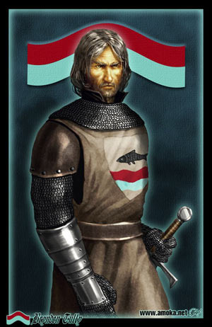 History: Was born into a kind of vaguely important family, who sen him to be a squire as soon as they could. His martial skills and intelligence saw him knighted soon after.