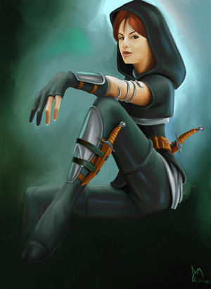 History: When she was little her farther taught her the art of thieving, he was caught and murdered when she was eight. Her mother cast her out after she stole the taxes back from the royal guards. At age 13 she went out into the wild, leaving her home and being recruited by fancy men to steal either information or rare items.