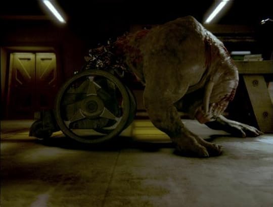 John Doe was paralyzed from the waist down and when he got bit, his disease and the plague kind of mutated each other. Now he's in a wheelchair, but he resembles a dog now...