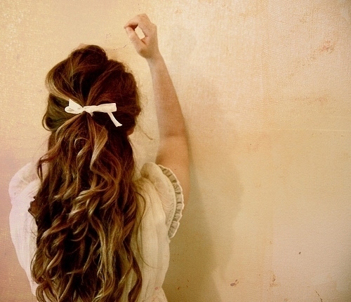 Other: Her hair is usually curled and pulled back with an off-white ribbon.