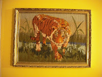 The living room has a tiger needlepoint hanging above our TV that my mom made for me. My dad made the frame! O