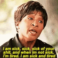 "I am sick. I am sick, sick, sick of your shit. And when I'm not sick, I'm tired. I'm sick and tired" — Wanda Sykes as Ruby