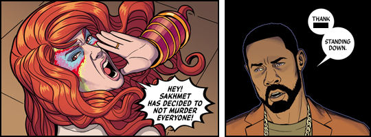 (1) Having enjoyed a period of time without behavioral rules and restrictions, the Pantheon now has to deal with the fallout of their hedonism and increasingly feral inhumanity.
